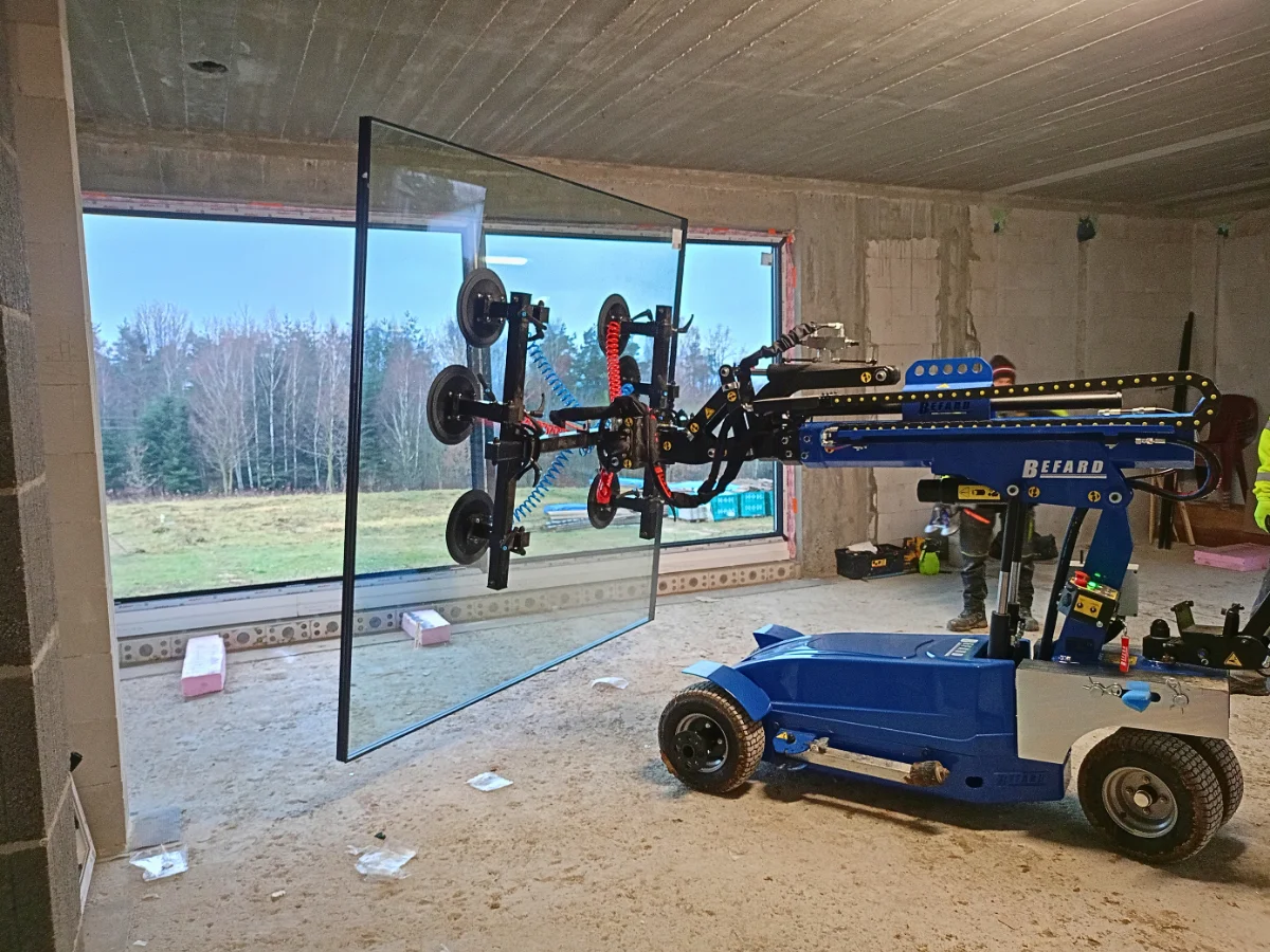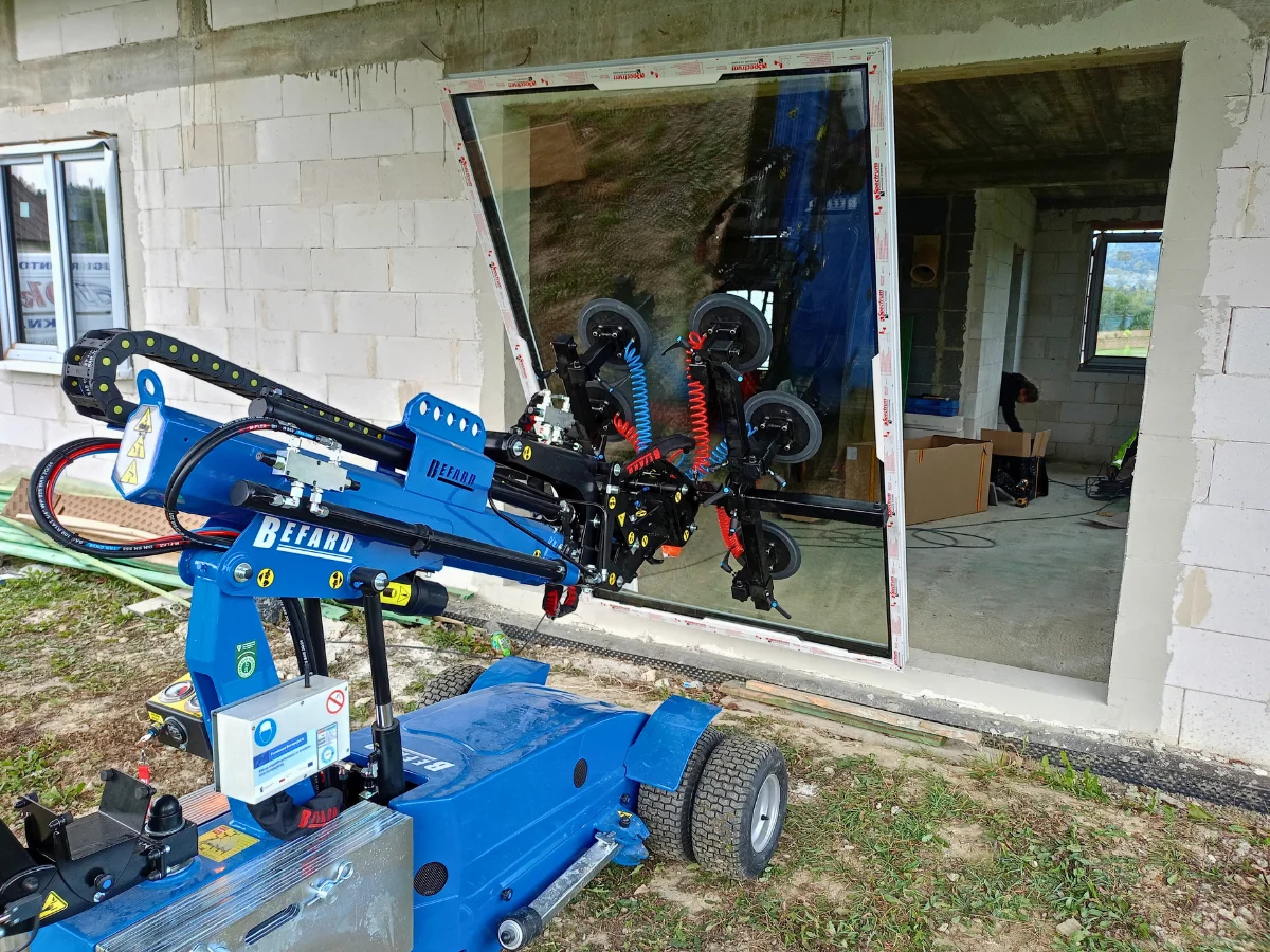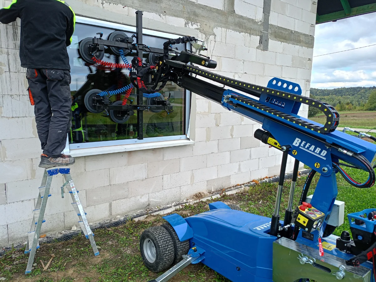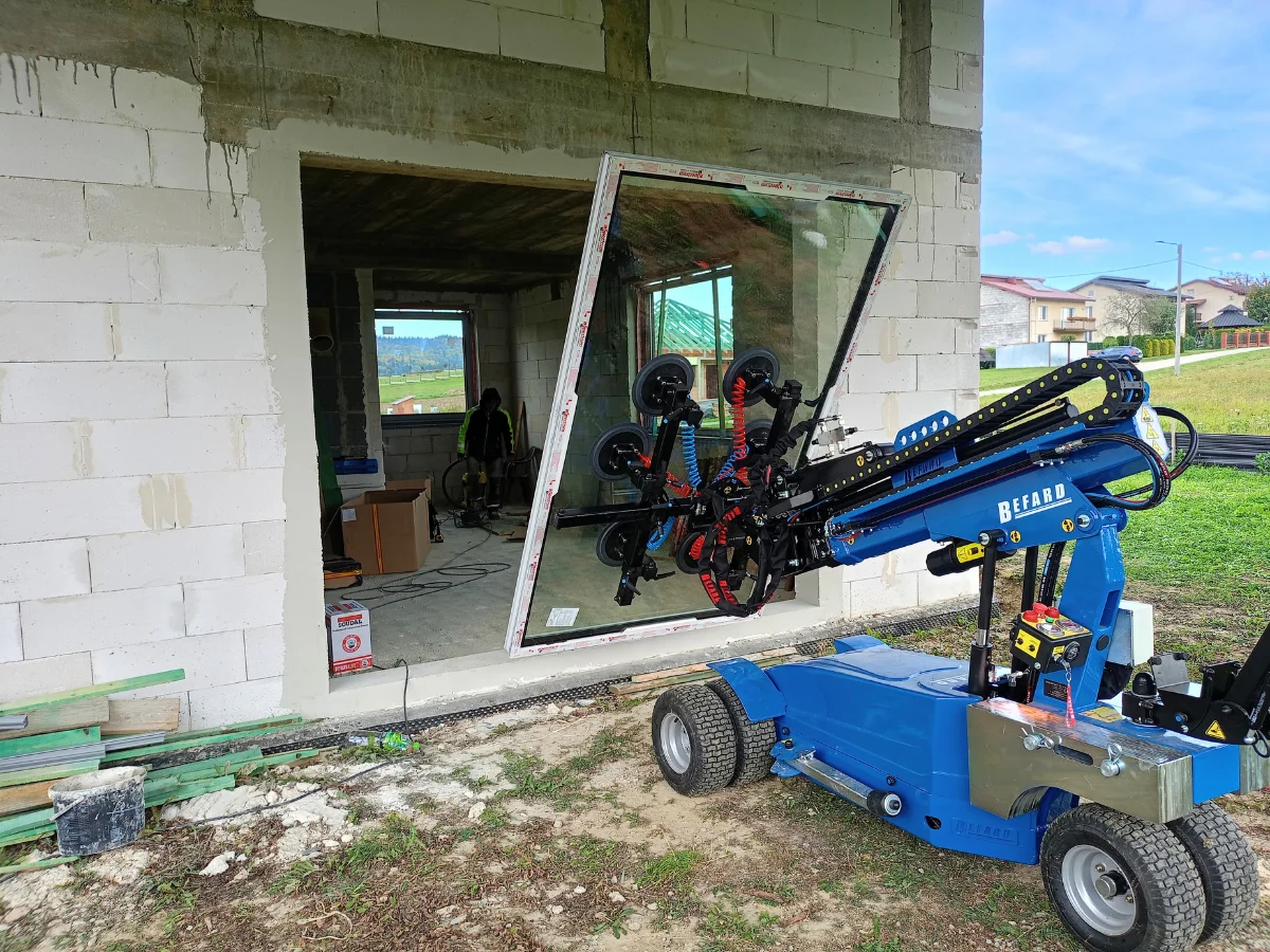 Jednym z takich rozwiązań jest nowoczesny manipulator do montażu stolarki marki Befard, który niedawno dołączył do naszego zaplecza technicznego. Manipulator ten został specjalnie zaprojektowany do transportu i instalacji ciężkich elementów, takich jak okna, drzwi balkonowe czy duże przeszklenia. Dzięki niemu możemy precyzyjnie ustawić i zamontować nawet bardzo duże i ciężkie konstrukcje, zachowując przy tym najwyższą dokładność montażu. Manipulator stabilnie utrzymuje okno w odpowiedniej pozycji, dzięki czemu nasi specjaliści mogą skupić się na perfekcyjnym osadzeniu stolarki w otworze okiennym.